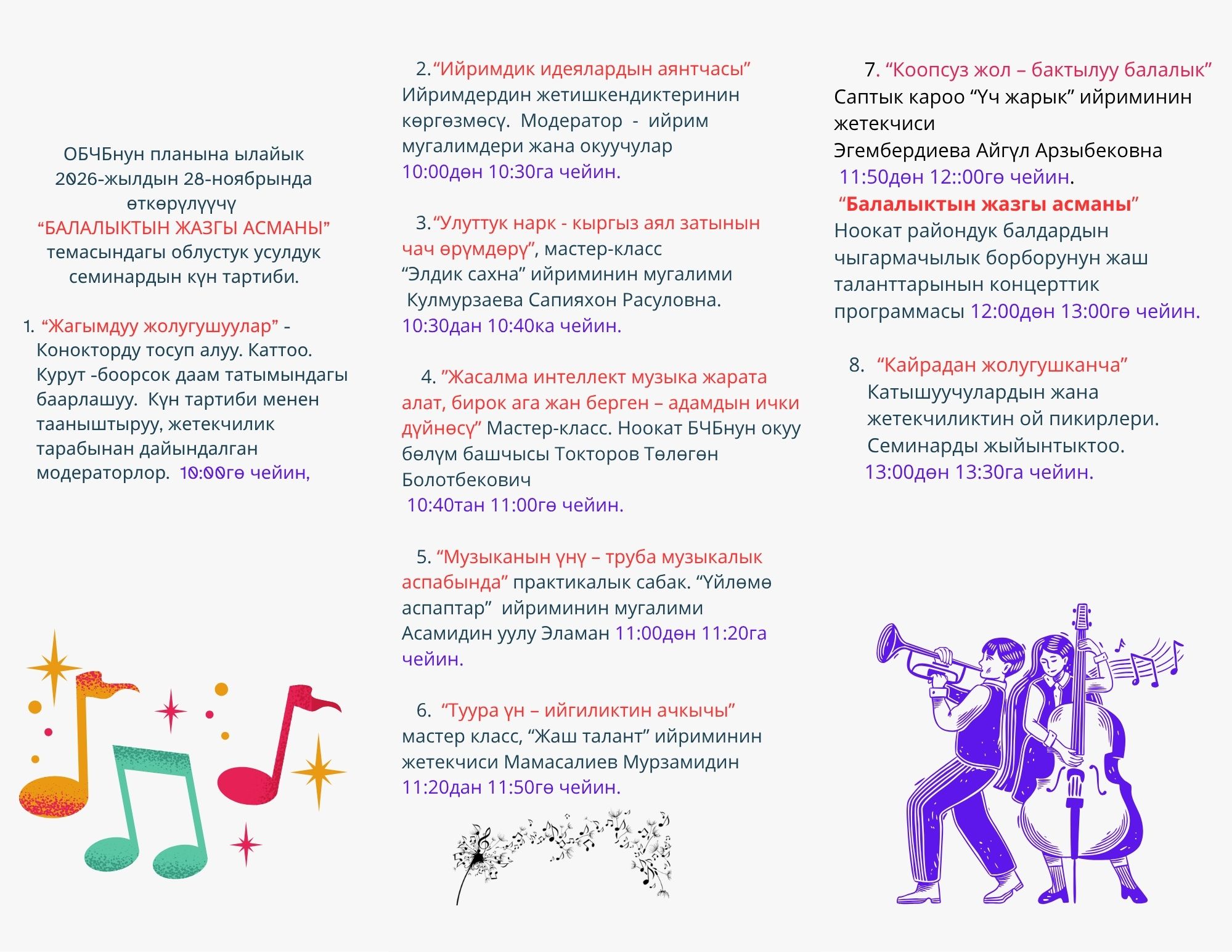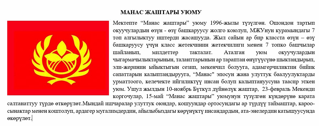 Ийримде окуучулардын акыл көрөңгөсү, адептик-ыймандык ар-намысы жана нарктуу баалуулуктары калыптанат.
